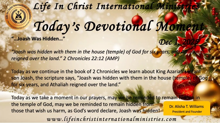 Today as we take a moment in our prayers, may we be reminded to remain hidden in the temple of God, may we be reminded to remain hidden from those that wish us harm, as God’s word declare, Joash was hidden!