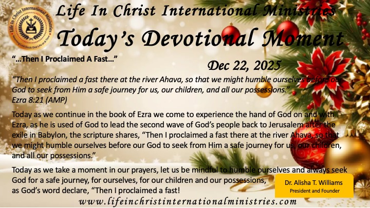 Today as we take a moment in our prayers, let us be mindful to humble ourselves and always seek God for a safe journey, for ourselves, for our children and our possessions, as God’s word declare, “Then I proclaimed a fast!