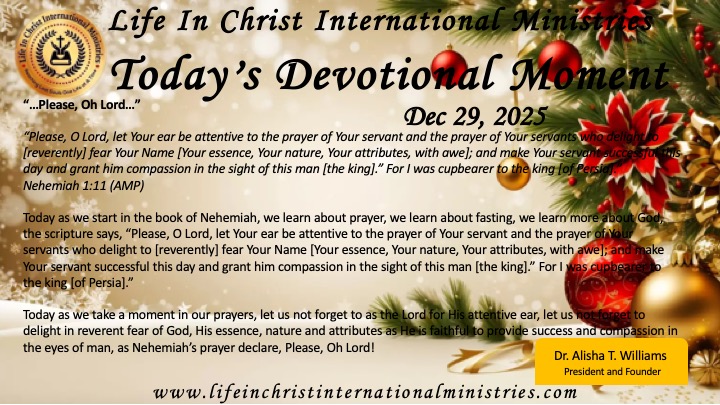 Today as we take a moment in our prayers, let us not forget to as the Lord for His attentive ear, let us not forget to delight in reverent fear of God, His essence, nature and attributes as He is faithful to provide success and compassion in the eyes of man, as Nehemiah’s prayer declare, Please, Oh Lord!