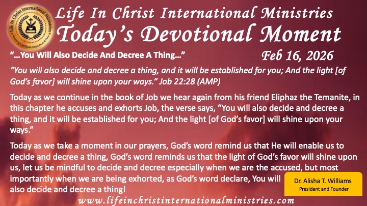 Today as we take a moment in our prayers, God’s word remind us that He will enable us to decide and decree a thing, God’s word reminds us that the light of God’s favor will shine upon us, let us be mindful to decide and decree especially when we are the accused, but most importantly when we are being exhorted, as God’s word declare, You will also decide and decree a thing!